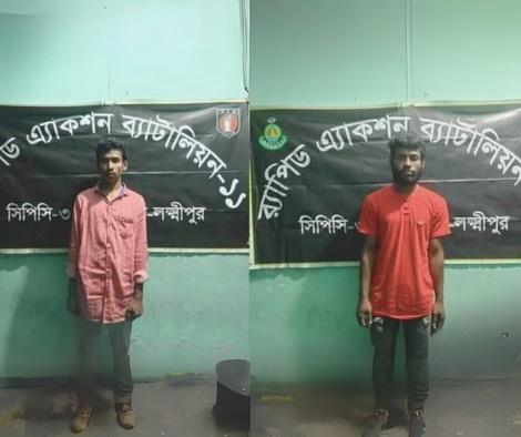 জাহিদুল ইসলাম, নোয়াখালী জেলা প্রতিনিধি:নোয়াখালীর বেগমগঞ্জ টেক্সটাইল ইঞ্জিনিয়ারিং কলেজের এক ছাত্রীকে চলন্ত সিএনজিতে হেনস্তার অভিযোগে দুই যুবককে গ্রেফতার করেছে র্যাব। শুক্রবার (১৪ মার্চ) দুপুরে বেগমগঞ্জ উপজেলার চৌমুহনী পৌরসভার নাজিরপুর এলাকা থেকে তাদের গ্রেফতার করা হয়।গ্রেফতারকৃতরা হলেন, নাজিরপুর এলাকার রাজুর ছেলে রবিন (২০) ও আলাইয়াপুর ইউনিয়নের শহীদুল ইসলামের ছেলে আরাফাত হোসেন অন্তর (২৩)।র্যাব জানায়, গত ১২ […]